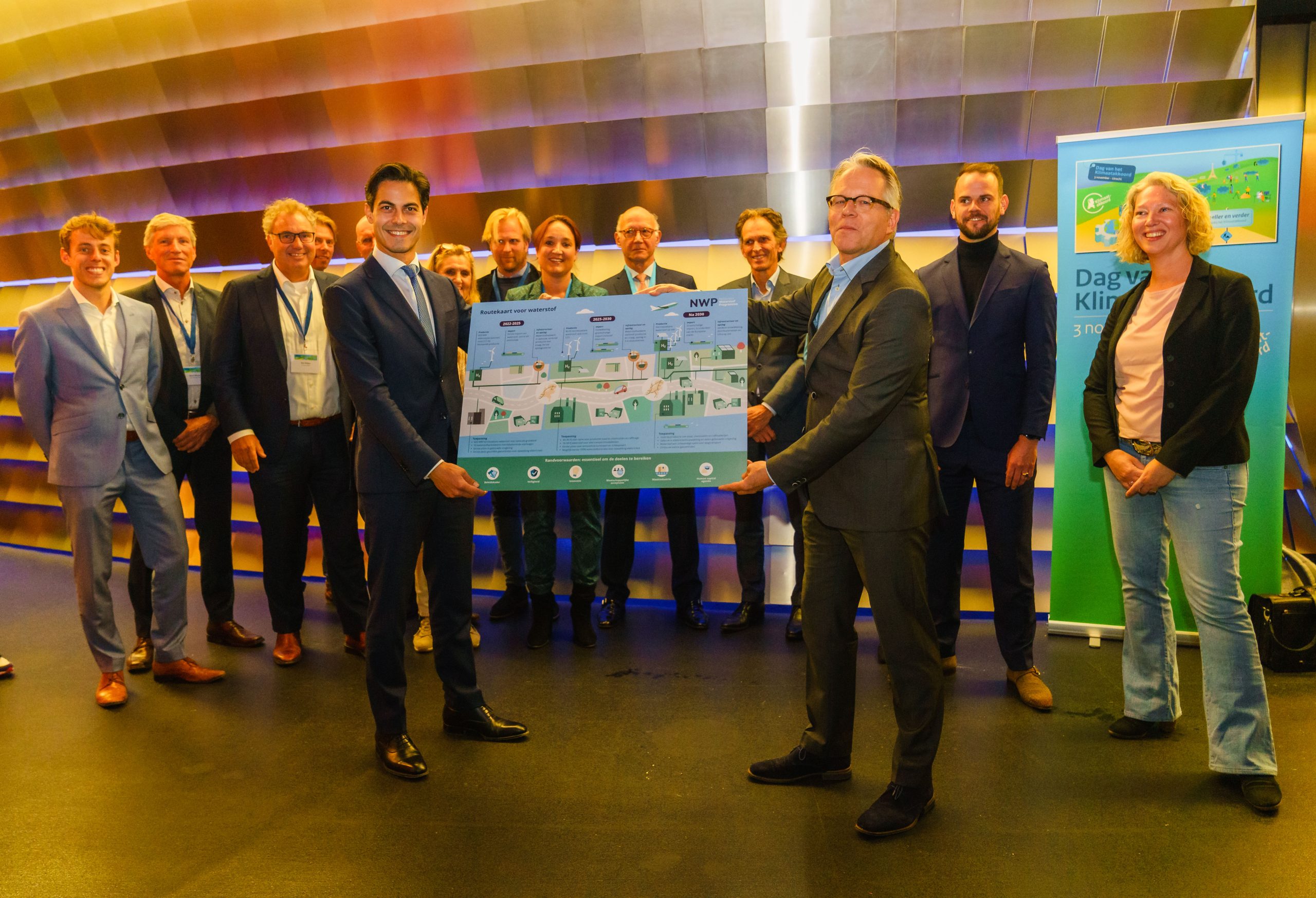 Vandaag tijdens de Dag van het Klimaatakkoord is de Routekaart Waterstof aan minister Jetten overhandigd. De Routekaart Waterstof is een initiatief van het Nationaal Waterstof Programma (NWP). In deze Routekaart roepen de deelnemers, een samenwerking tussen de overheid en een brede coalitie aan marktpartijen, van het NWP het kabinet op om de Nederlandse ambities op het gebied van hernieuwbare waterstof te verhogen.